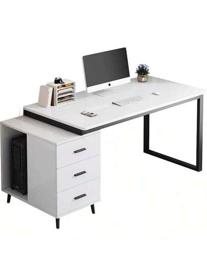 Escritorio Sencillo Mesa De Ordenador Y Estudio 100x50x72cm - Blanco - Añade 2