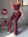 Conjunto de yoga de dos piezas para mujer Aoqta Sports: Top de manga larga con cuello en V de unicolor y pantalones slim de cintura alta para ocio, deportes al aire libre, running y fitness