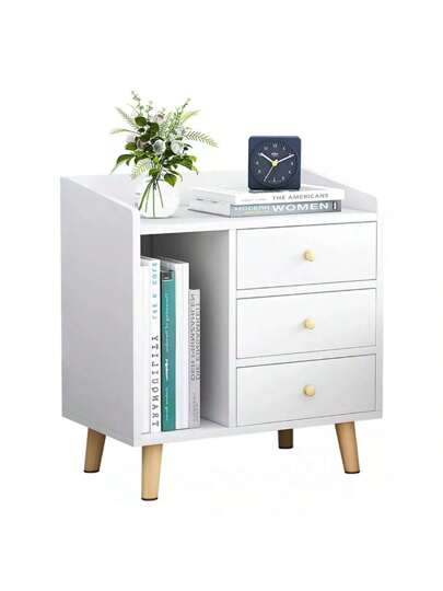 Buros De Madera Sencillos Con 3 Cajones Mesa De Noche Buro - Blanco - Añade 1
