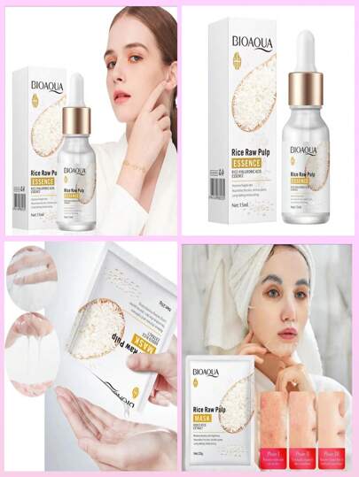 Kit Facial Serum Arroz Acido hialuronico Bioaqua + Mascarilla Facial Arroz White Rice Aclarante Arrugas Acne - Unitalla - Añade 4