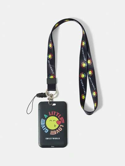 SmileyWorld® | SHEIN Titular de tarjetas con estampado de cara sonriente y texto, elegante y lindo - Negro - Añade 1