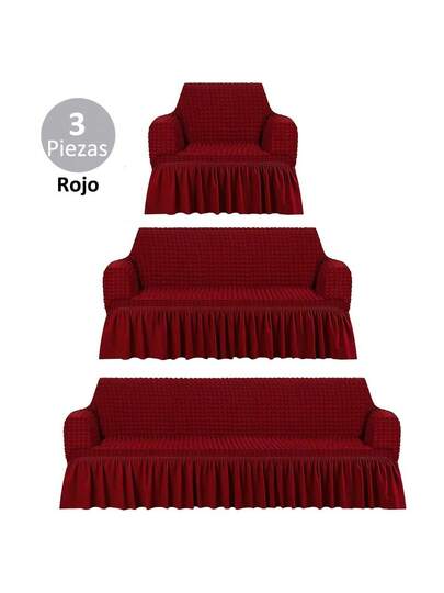 3 Piezas Funda para Sofá con Volante Elástica para Sofá de 1/2/3 Plazas Antideslizante y Lavable Protector Resistente al Desgaste y Antipolvo Decoración del Hogar Forros para Sillones - Burdeos - Añade 4