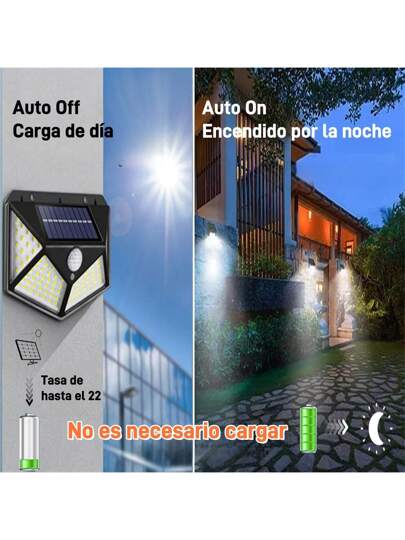 100 LED BRILLANTES LUCES SOLARES: Luces solares para exteriores con 100 LEDs más brillantes para más brillo y mayor vida útil. Estas luces solares están equipadas con baterías de 1000 mAh y se pueden cargar completamente en sólo 6-8 horas con luz solar directa. Ángulo de iluminación de hasta 270Deg', iluminación más amplia y brillante, hacer su camino a casa más cómodo y seguro. FÁCIL INSTALACIÓN: Diseño compacto montado en la pared, fácil de montar en la pared con sólo dos tornillos incluidos. Ya que son inalámbricas, puede instalar estas luces en cualquier lugar, ya sea su patio, patio, porche, garaje o patio trasero. Cuando elija dónde montar sus luces solares, tenga en cuenta que la luz del sol debe ser directa para que sean más eficaces. SEGURIDAD: En la oscuridad, la Luz Solar de Seguridad para Exteriores con Sensor de Movimiento tiene 3 modos de iluminación: 1) MODO SEGURIDAD/SENSOR DE MOVIMIENTO: Sin movimiento - No se enciende. Movimiento detectado - se enciende. Después de 30 segundos de movimiento detectado, la luz se apagará. 2) Modo Seguridad/Sensor de Movimiento + Modo Luz Débil: Sin Movimiento - Luz débil. Movimiento detectado - luz encendida. Luz encendida 10 segundos después de detectar movimiento.3) Modo Luz Débil: Sin movimiento o movimiento detectado - luz tenue. Panel solar de alta eficiencia: El foco solar para exteriores funciona con energía solar. No requiere cables. TODO EL TIEMPO IMPERMEABLE: La luz solar está hecha de todo tipo de clima de plástico ABS, diseño resistente al agua hasta IP65, que puede soportar condiciones climáticas extremas como la nieve, la lluvia, el frío, el calor y así sucesivamente.