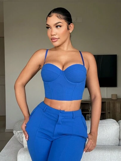 SHEIN SXY Top Elegante De Color Sólido Estilo Bustier Con Tirantes Finos - Azul - Añade 2