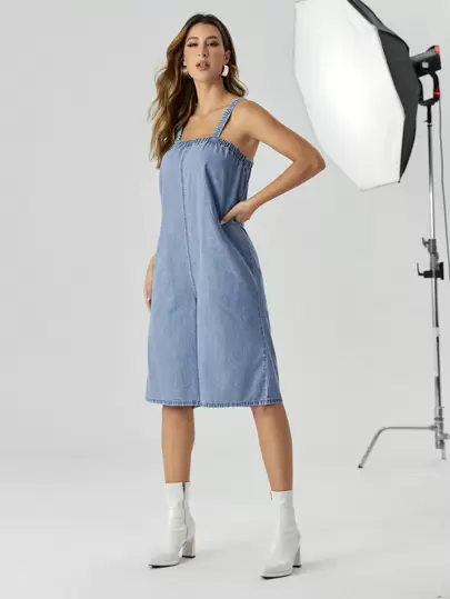 SHEIN Privé Vestido overol mezclilla unicolor - Azul - Añade 1
