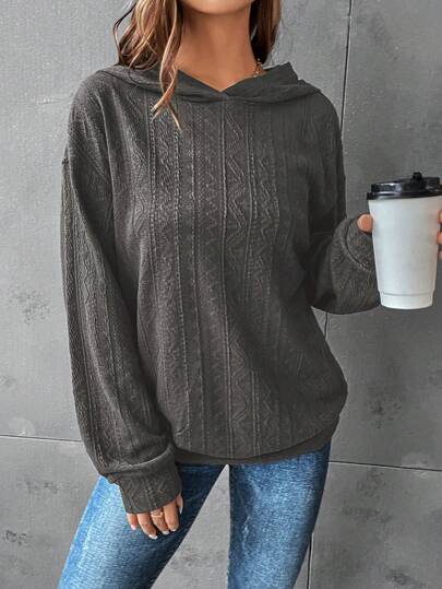 SHEIN LUNE Sudadera con capucha unicolor de hombros caídos - Gris Oscuro - Añade 4