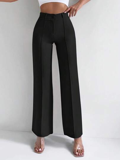 EURMUSE Pantalones de traje de cintura alta y pierna recta de unicolor y versátil - Negro - Añade 2