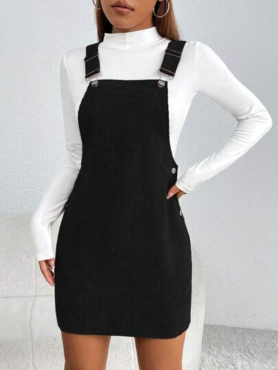 SHEIN PETITE Vestido overol unicolor sin camiseta - Negro - Añade 1