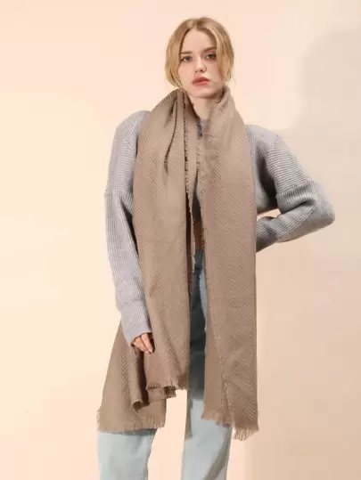 Bufanda chal con flecos y patrón de pata de gallo acrílico de Color sólido para mujer, adecuado para uso diario, 1 pieza - Caqui - Añade 1