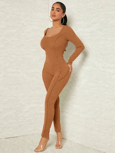 SHEIN SXY Mono unitard unicolor de cuello scoop - Marrón - Añade 5