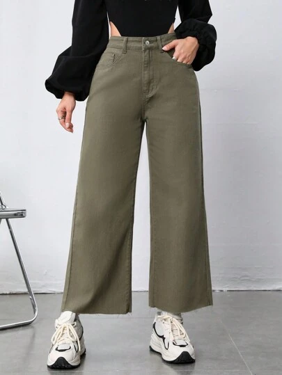 Jeans unicolor de pierna ancha - Verde militar - Añade 5