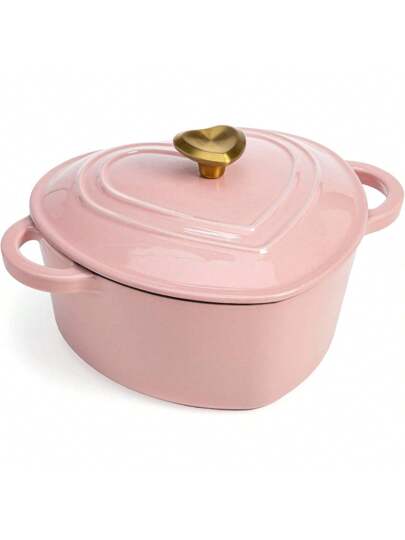 Olla en forma de corazón para horno holandés esmaltado con tapa, asas dobles, funciona en todas las estufas, apta para horno a 500 °F, 2 cuartos de galón, rosa - 1 - Añade 1