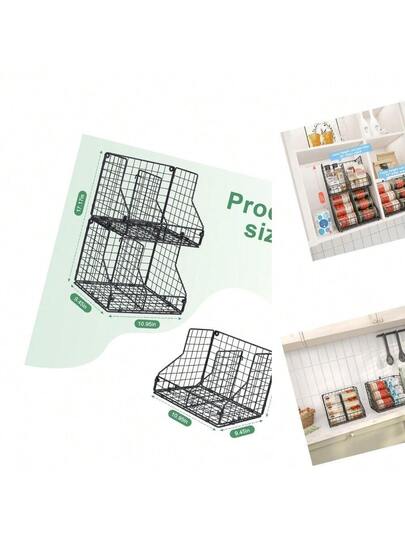 Organizador Despensa Apilable Hierro Negro con 2 Divisores Ajustables, Dispensador Latas para Hasta 28 Unidades, Estante Escalón 2 Niveles para Cocina - Negro - - Añade 1