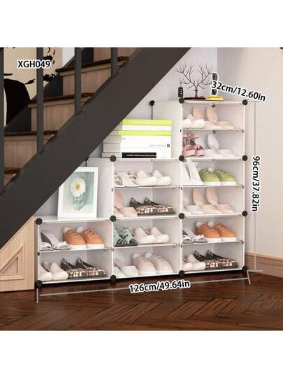 Gabinete de zapatos tipo escalera debajo de las escaleras, estantería tipo escalera angulada, organizador de almacenamiento doméstico de alta capacidad - Multicolor - Añade 11