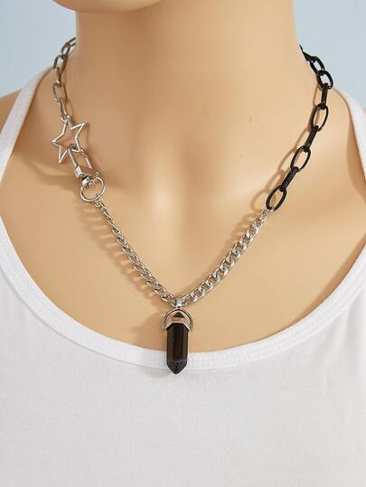 Collar con accesorio con diseño de estrella piedra - Negro - Añade 1