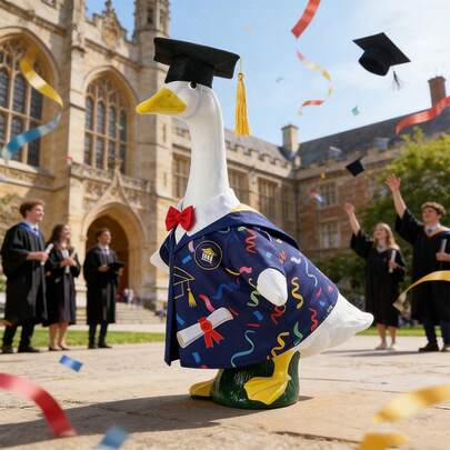 Traje de ganso para porche de graduación, ropa creativa de plástico con estampado de ganso y sombrero de graduación para jardín al aire libre. - Azul - Añade 4