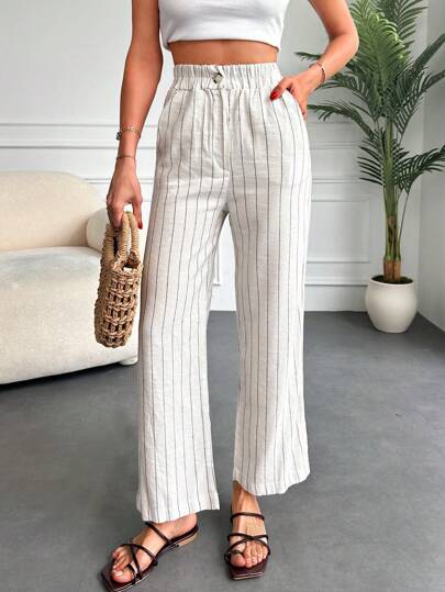 EURMUSE Pantalones con estampado de rayas con bolsillo oblicuo - Blanco - Añade 5