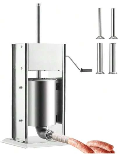 PtioHavn Embutidora De Acero Inoxidable, Máquina Embutidora De Salchichas, Modelo Manual De Sobremesa, Diseño De Embutición Vertical De Doble Velocidad, Apta Para Uso Doméstico o En Restaurantes(15L). - 15 litros - Añade 4