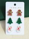 3 pares/set de pendientes acrílicos de mujer con diseños navideños de muñeco de nieve, árbol de Navidad, galleta de Navidad y hombre de jengibre, accesorios elegantes para fiestas navideñas