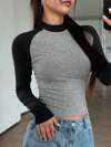 DAZY Camiseta de cuello alto de manga larga con bloques de color para mujer