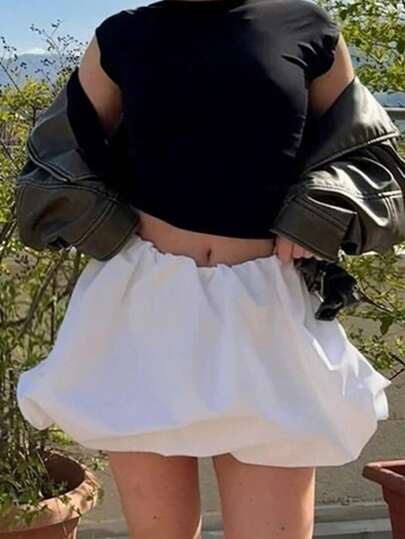INAWLY Falda de burbujas sólida para uso diario en verano - Blanco - Añade 1