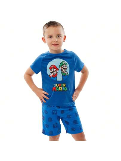 Pijamas de Super Mario | Pijamas de Mario y Luigi para niños | Pijamas cortos para niños | Productos oficiales de Mario - Azul - Añade 3