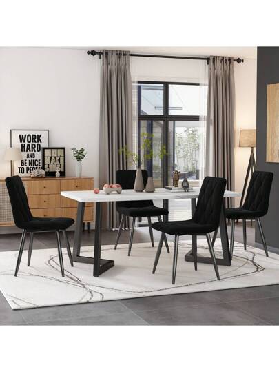 Sweiko Silla de comedor (4 piezas) negra, juego de 4 sillas tapizadas, silla de diseño, silla de comedor de terciopelo sarga, silla de cocina con respaldo, asiento de terciopelo, estructura de metal, patas de metal - Negro - Añade 1