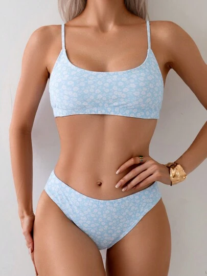 Swim Mod Bañador bikini con estampado floral - Celeste - Añade 2