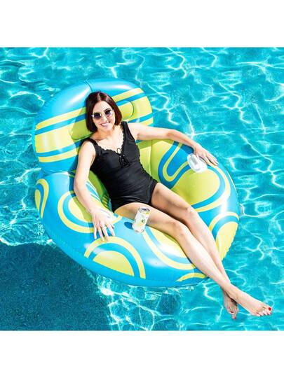 Tumbona inflable para piscina, sofá flotante con respaldo grande - Azul - Añade 1