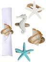 4-20 piezas Anillos de servilleta hechos a mano con cuerda de lino natural y estrella de mar de resina, adecuados para uso en exteriores, fiestas temáticas, decoración de mesa de comedor festiva