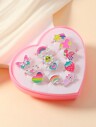 Conjunto De 10 Anillos De Moda Con Forma De Corazón Y Frutas De Resina Para Niñas Adolescentes