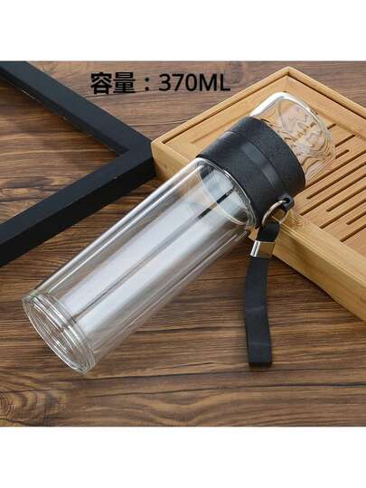 Botella de agua deé, vaso de agua de doble capa de vidrio de borosilicato alto, vaso infusor, botella de agua con filtro deé J6PI - 370 ml negro - Añade 1