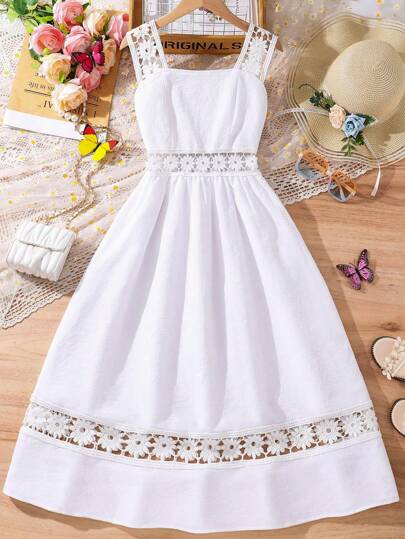 Vestido De Tirantes De Encaje Para Niñas Adolescentes - Blanco - Añade 1