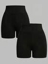 SHEIN Mallas negras básicas de unicolor, de ajuste ceñido, cómodas y minimalistas para yoga, para adolescentes
