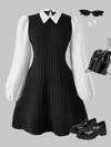 SHEIN ChillGRL Vestido corto casual de manga larga con estilo universitario y diseño de patchwork para adolescentes