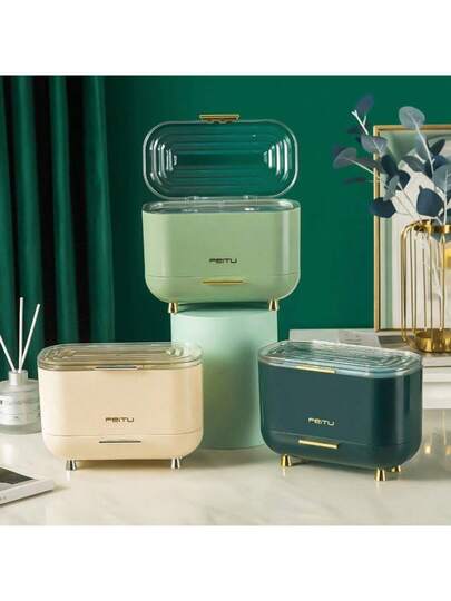 Caja de pañuelos con tapa abatible - Dispensador de toallas de papel de gran capacidad para el escritorio para la sala de estar / Contenedor de almacenamiento doméstico - Multicolor - Añade 1