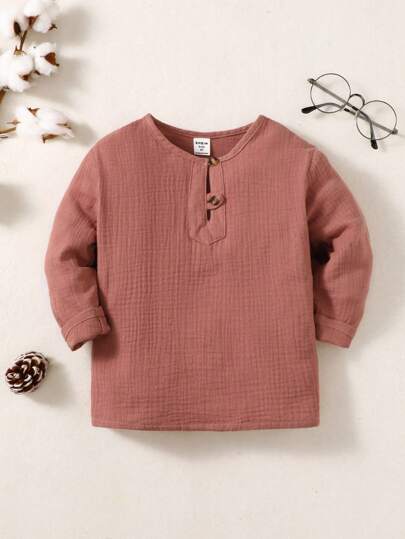 SHEIN Niñito Top con botón delantero - Óxido marrón - Añade 3