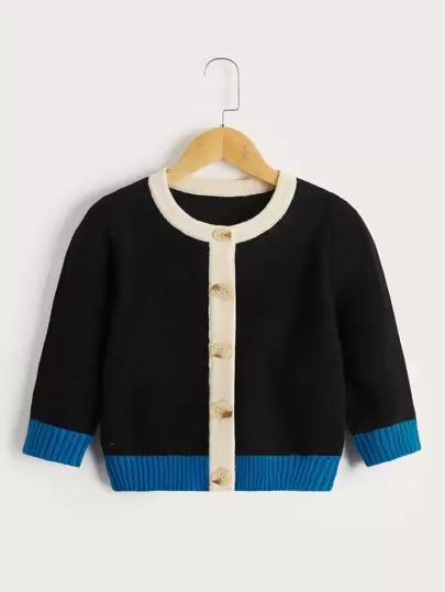 Niñitos Cárdigan ribete en contraste con botón delantero - Negro - Añade 1