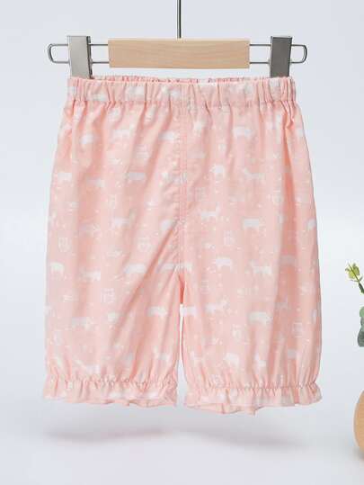 YINGZIFANG Shorts casuales lindos con estampado de caricatura para niña joven - Rosa coral - Añade 1