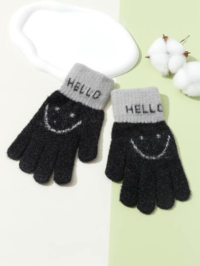 Niños Guantes con estampado de expresión & letra - Negro - Añade 1