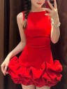 Vestido mini plisado rojo sexy para mujer para fiestas y cócteles. Vestido mini sexy para mujer. Vestido formal exquisito con ropa abultada y pomposa para Navidad, Año Nuevo y festivales de primavera
