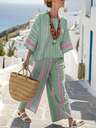 Pantalones largos de lino cómodos, casuales y transpirables con cintura elástica, diseñados para primavera, verano y otoño. Los pantalones tienen decoraciones de botones cosidos a mano.