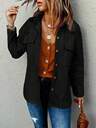 Chaqueta suelta de estilo retro con rayas verticales azules de terciopelo suave para otoño, con un solo hilera de botones. El ajuste es suelto, por lo que se recomienda comprar una talla talla grande pequeña si eres delgada. Casual y versátil.
