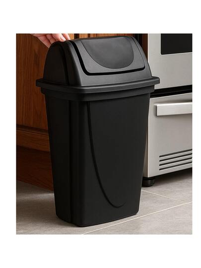Bote de basura de plástico, con tapa balancín. Capacidad 14 litros, bote de basura para cocina, baño, dormitorio - Negro - Añade 1