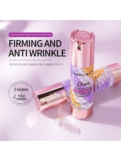 Crema Facial Triple Para Levantamiento Antigravedad De 60g, Hidratante, Para Reponer Agua, Antarrugas, Reafirmante Y Aclarante De Líneas Finas De Textura En Gel Transparente. Adecuada Para Hombres Y Mujeres, Conveniente Para Hogar Y Viaje. - Gris Claro - Añade 1