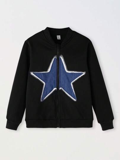 Chaqueta con cremallera para niños preadolescentes con parches en forma de estrella, para otoño/invierno - Negro - Añade 1