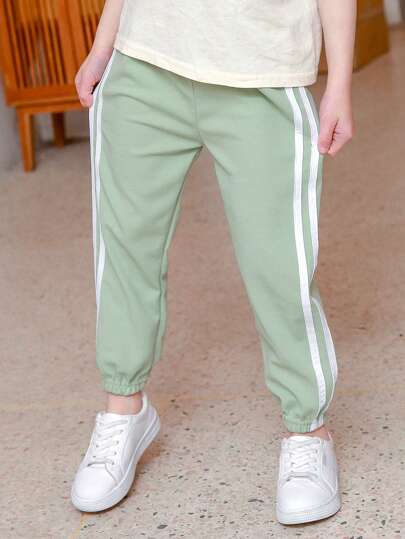 Chica preadolescente Pantalones con cinta lateral en contraste - Verde - Añade 1