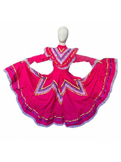 Vestido Jalisco Traje Tipico Niña Folklor Mexicano Festival Escolar Vestuario Jalisciense Disfraz Vestido Guadalajara - Rosa Fucsia - Añade 1