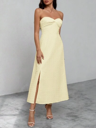 GENKIRA Vestido tubo girante delantero de muslo con abertura - Beis - Añade 2