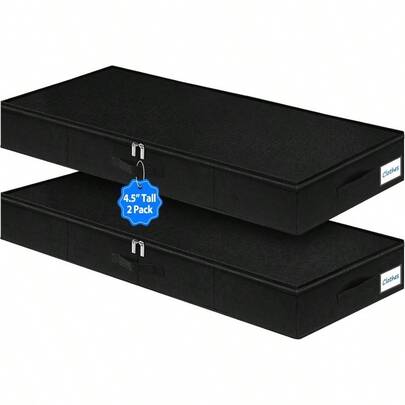 jjytContenedores de almacenamiento para debao de la cama de perfil bao debao de la cama organizador de almacenamiento de ropa de 4.5 pulgadas de o con lado e infer rigido gado y pocoAlmacenamiento bajo la cama - NEGRO 2 PIEZAS - Añade 5